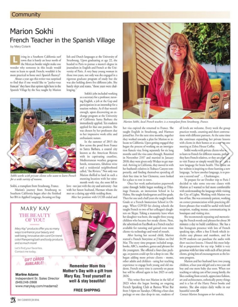 My work and teaching approach have also been highlighted in the San Clemente Journal – Click here to read